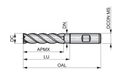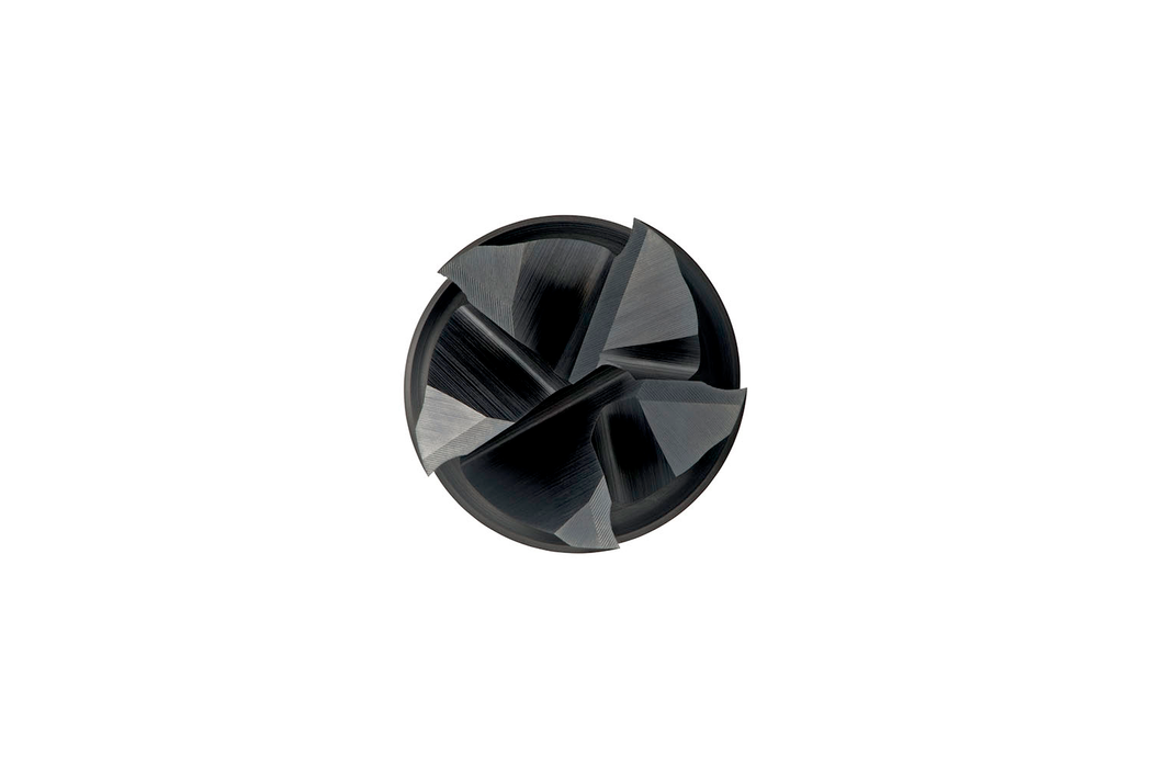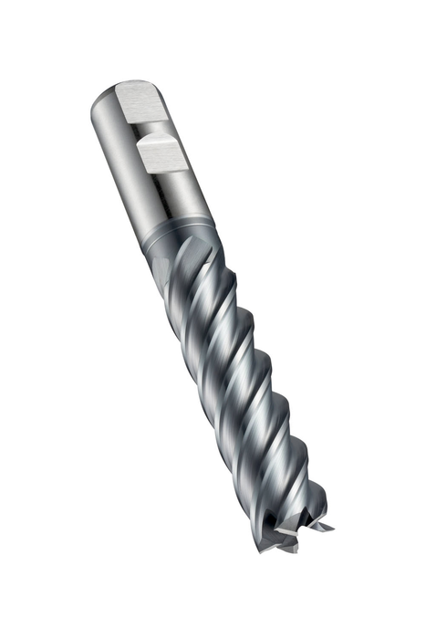 Long series end mill with 5 flutes, diameter 25mm with 90mm length of cut, 166mm overall length and 109.5mm reach with neck relief, according to DIN 844 L standard with a 25mm Weldon shank, powder metallurgical HSS-E with Alcrona coating, 45° helix and 12° rake angle for shoulder milling and slot milling in plain carbon, alloy and tool steel, stainless steel, cast-iron, copper or copper alloys and high-temperature alloys