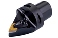 Double clamp turning tool for holding a 55° rhombus negative insert with an inscribed circle diameter of 12.7mm, 6.35mm thick (ISO designation DN.. 1506.. ), neutral hand 62°30' side cutting with straight shank according to ISO 26623 (Polygon Shank Coupling) size C5, with 60mm protruding length for single and multi-directional copy turning