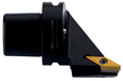 Screw clamp turning tool for holding a 35° rhombus positive insert with an inscribed circle diameter of 9.525mm, 4.76mm thick (ISO designation VB.. 1604.. or VC.. 1604.. ), left hand 107°30' side cutting with off-set shank according to ISO 26623 (Polygon Shank Coupling) size C5, with 35mm funtional width and 60mm protruding length for taper turning, single and multi-directional copy turning and longitudinal turning with and without shoulder