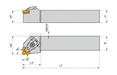Double clamp turning tool for holding a 80° rhombus negative insert with an inscribed circle diameter of 12.7mm, 4.76mm thick (ISO designation CN.. 1204.. ), right hand 95° side and end cutting with off-set shank, 25mm tool height x 25mm width x 150mm long for taper turning, face turning with and without shoulder and longitudinal turning with and without shoulder