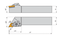 Double clamp turning tool for holding a 55° rhombus negative insert with an inscribed circle diameter of 12.7mm, 6.35mm thick (ISO designation DN.. 1506.. ), left hand 93° side cutting with off-set shank, 25mm tool height x 25mm width x 150mm long for taper turning, single and multi-directional copy turning and longitudinal turning with and without shoulder