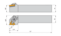 Double clamp turning tool for holding a triangular negative insert with an inscribed circle diameter of 9.525mm, 4.76mm thick (ISO designation TN.. 1604.. ), left hand 90° side cutting with off-set shank, 25mm tool height x 25mm width x 150mm long for taper turning and longitudinal turning with and without shoulder