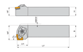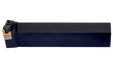 Double clamp turning tool for holding a 80° rhombus negative insert with an inscribed circle diameter of 15.575mm, 6.35mm thick (ISO designation CN.. 1606.. ), right hand 75° end cutting with off-set shank, 32mm tool height x 32mm width x 170mm long for face turning without shoulder