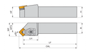 Double clamp turning tool for holding a square negative insert with an inscribed circle diameter of 19.05mm, 6.35mm thick (ISO designation SN.. 1906.. ), right hand 45° side cutting with off-set shank, 32mm tool height x 32mm width x 170mm long for chamfering, taper turning, single and multi-directional copy turning, face turning without shoulder and longitudinal turning without shoulder