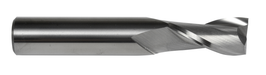 Regular length end mill with 2 flutes, diameter 7/32" with 5/8" length of cut and 2.1/2" overall length, according to DORMER standard with a 1/4" plain shank, solid carbide with bright finish, 30° helix for slot milling in steel and cast steel, malleable, ductile and compacted graphite cast-iron and copper or copper alloys
