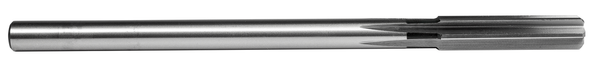 Chucking reamer with straight flutes and a cylindrical shank, diameter 0.1230" with an overall length of 3.1/2" and a flute length of 7/8", manufactured in accordance to ANSI B94.2-1983(R1988) standards for reaming precise holes, HSS with bright finish for machining free machining steel, copper or copper alloys
