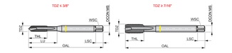 Spiral point tap Yellow Shark with chamfer form B with a 3.5-5xP second lead, for Unified National Coarse thread UNC 10 with 24 TPI and 2B class of fit with H3 pitch diameter limits, dimensions according to DIN/ANSI standard with 0.1940" shank and 0.1500" square drive, powder metallurgical HSS-E with TiAlN-Top coating for 2.5xD through hole threading in free machining and plain carbon steel and copper or copper alloys