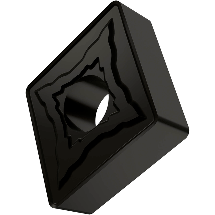 Double-sided negative turning insert, 80° rhomboid with inscribed circle diameter of 5/8", 1/4" thick, 3/64" nose radius and indexing accuracy according to ISO-tolerance class- M, chip-breaker NMR, in grade T9325, a MT-CVD coated functionally graded WC-Co carbide within ISO ranges P15-P35 and M10-M30, for fine to heavy machining of steels and stainless-steels